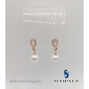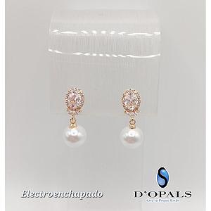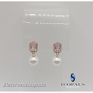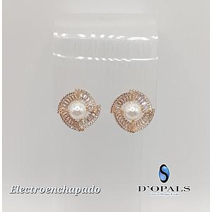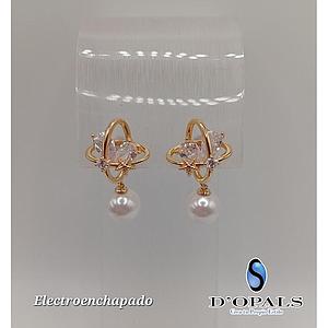 ARETE CON PERLA Y CRISTALES DE ELECTROENCHAPADO 18K