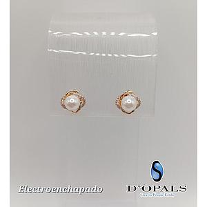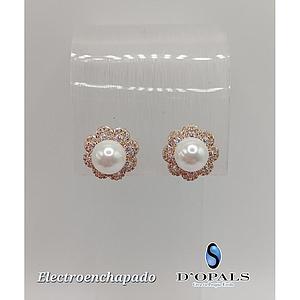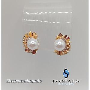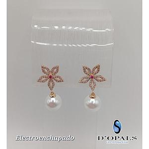 ARETE DE FLOR CON PERLA ELECTROENCHAPADO 18K