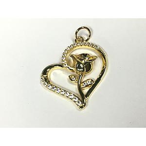 DIJE CORAZON CON ROSA MICROCIRCONIA