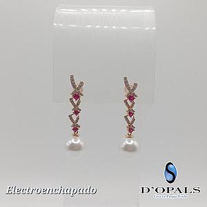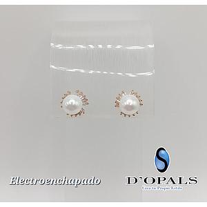 ARETE DE FLOR CON PERLA ELECTROENCHAPADO 18K