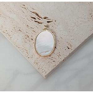 DIJE OVALADO DE ELECTROENCHAPADO Y CONCHA NACAR 25MM