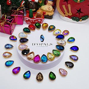 CRISTAL ENGARZADO GOTA ORILLA DORADA 13X18MM